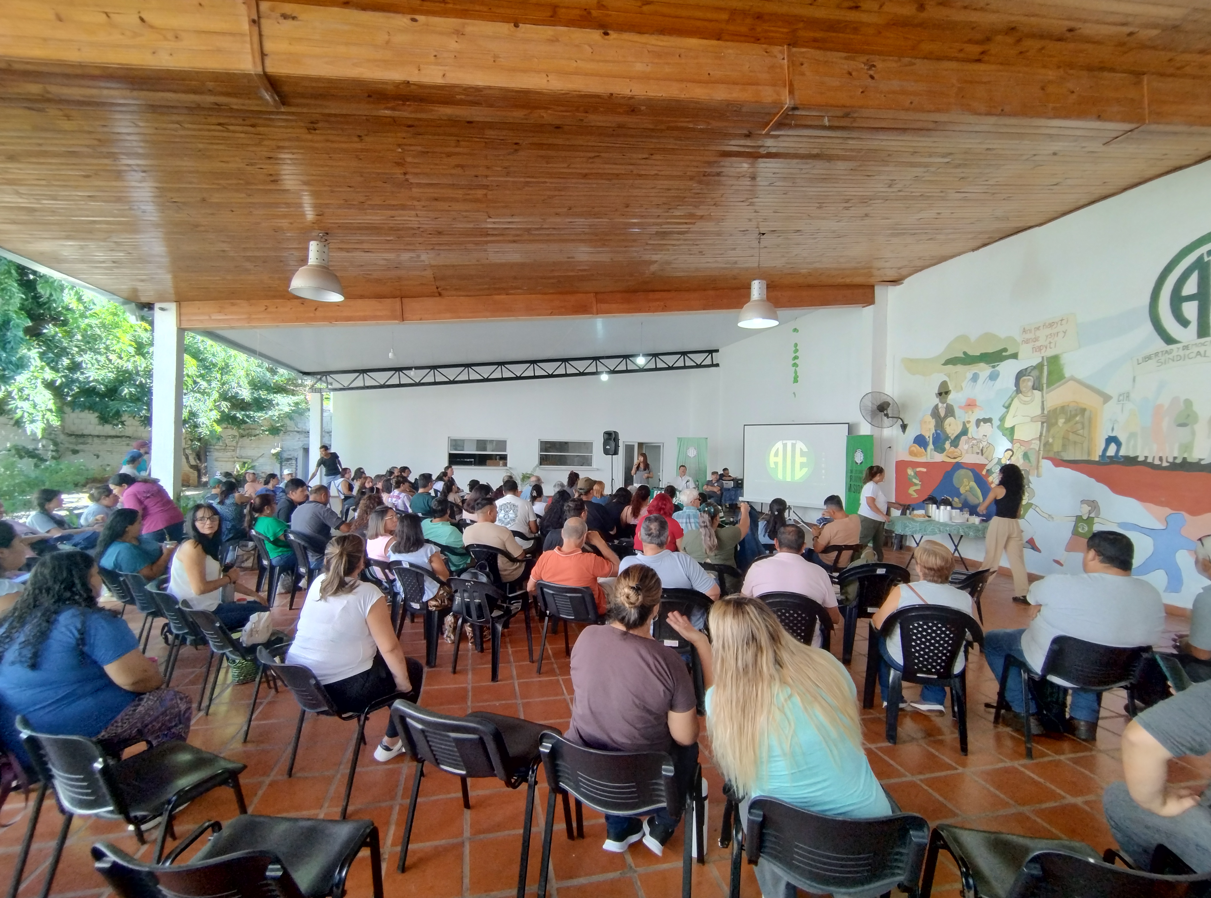 La primera intervención tras la exposición fue de mi compa, quien mencionó la gesta del recientemente fallecido metrodelegado Beto Pianelli y expresó la necesidad de unidad para combatir el ajuste. Inmediatamente, la secretaria general de ATE, Miriam López, tomó la palabra para aclarar que ese >no es un espacio para «discursos políticos», sino exclusivamente para preguntas técnico-legales al especialista.