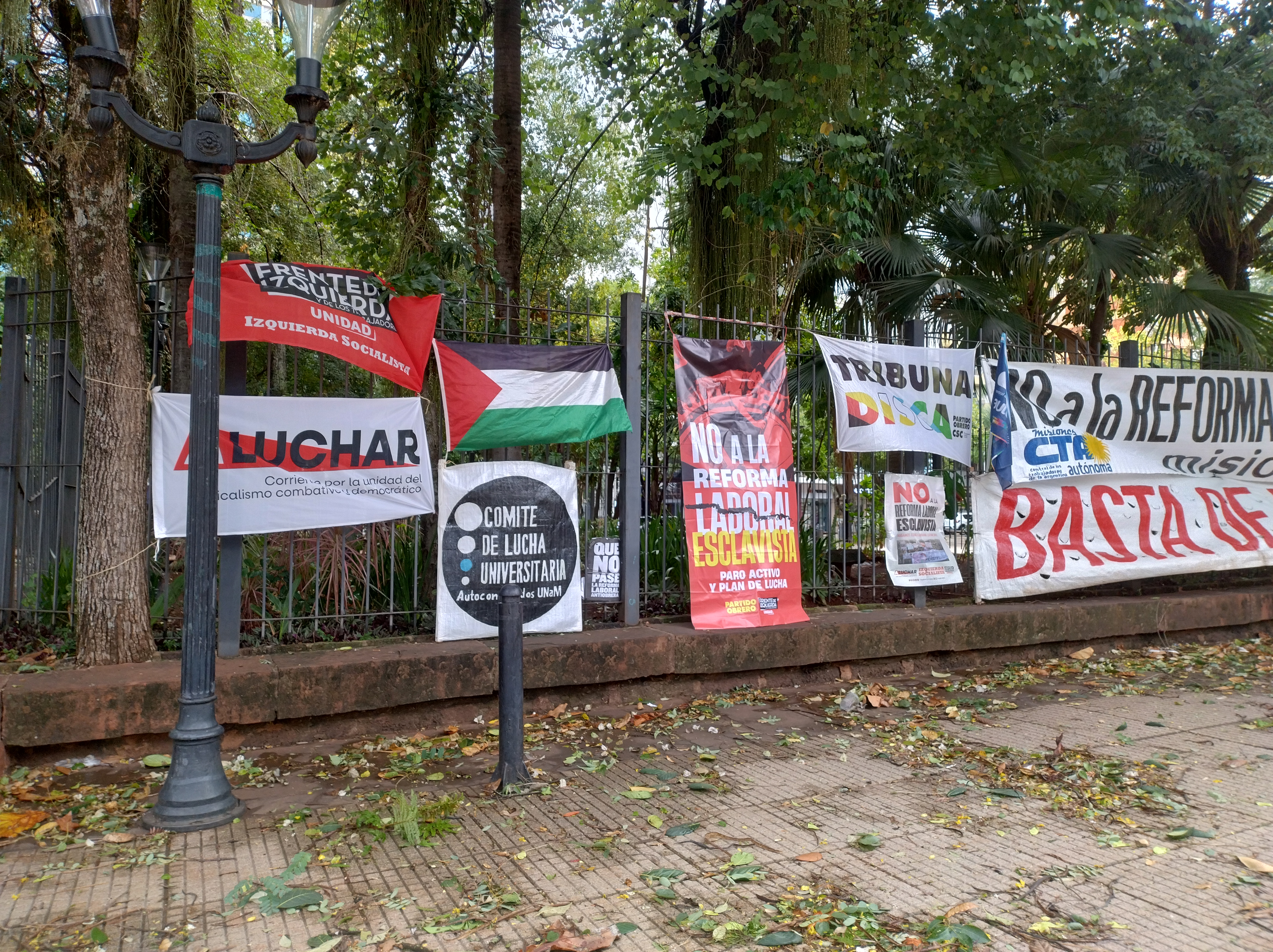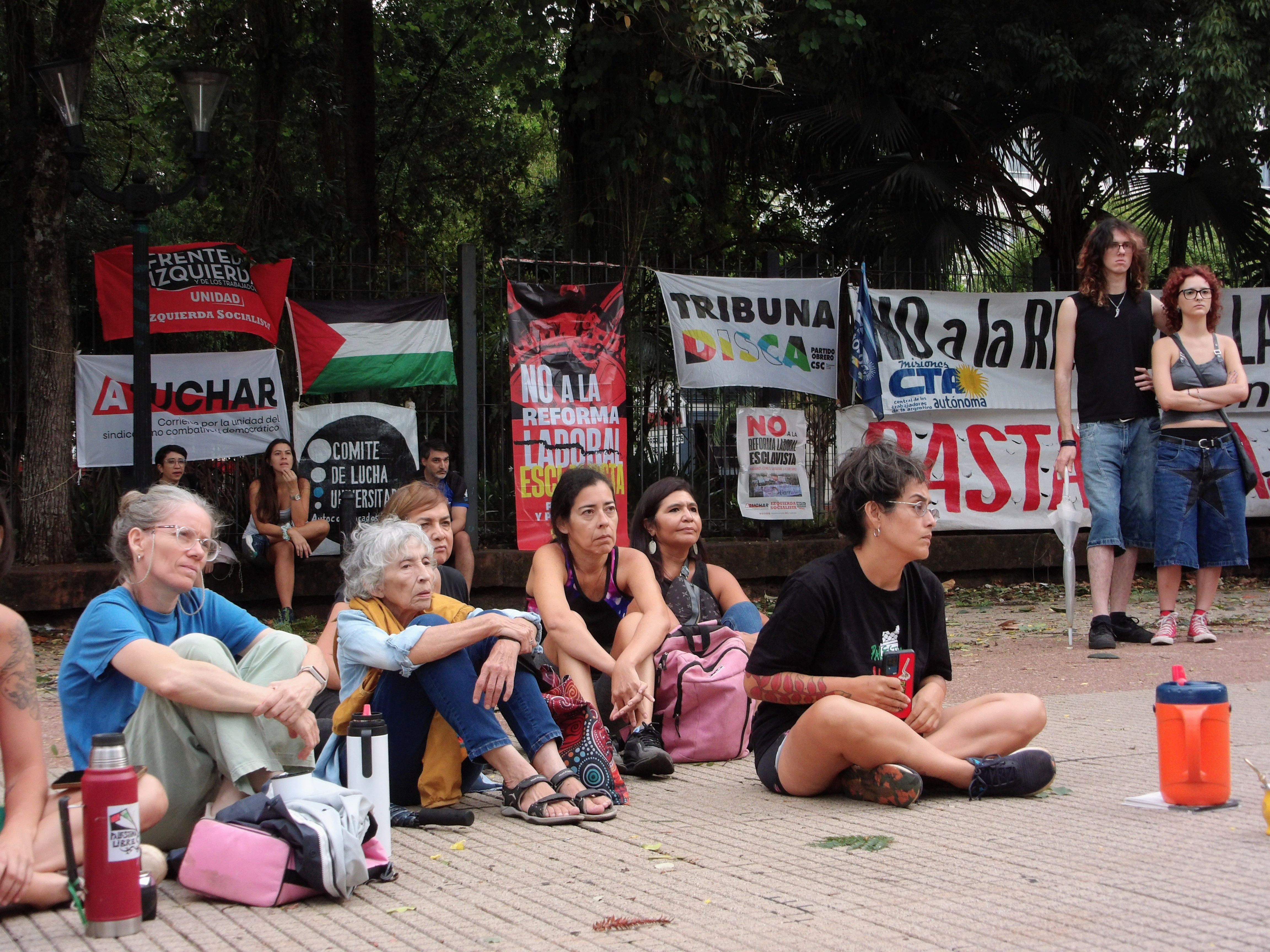 [Actualización] La actividad se concretó a pesar de la tormenta y el paro de colectivos. También a pesar de la desmovilización de la CGT y parte de CTA (ATE), aunque varios espacios debieron suspender su presencia. Esa misma noche, la cámara baja avaló la reforma laboral de Milei con el acompañamiento de los legisladores renovadores peronistas. El proyecto esclavista vuelve a la cámara alta, donde ya tuvo media sanción, siempre con el voto de los legisladores de Passalacqua y Rovira. Al final de la convocatoria se pautó movilizar el viernes 27, el día que se trataría en el Senado.