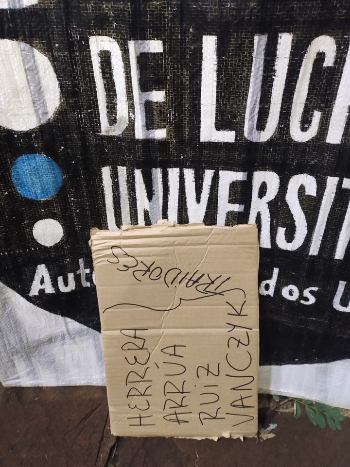 Por parte de la universidad, a la mañana, hubo un par de nodocentes y un grupo de docentes, algunos, integrantes de Adunam; en el turno tarde, una compa sumó precisamente 3 secres sindicales (general, capacitación y Fatun), el decano de FHyCS, la secretaria gral de recursos humanos, 6 docentes (entre ellos, el secre gral de UDUM), 5 nodos de rectorado, 2 de ingeniería, 1 de económicas, 1 de enfermería, 30 de humanidades.