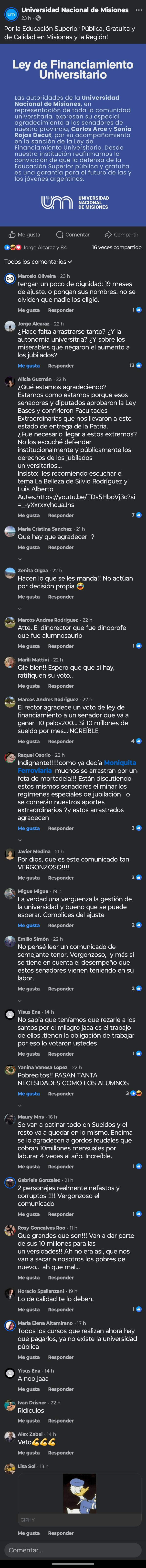 Apunto solo dos ideas expresadas durante las intervenciones. Un docente observó que la plaza estuvo llena cuando Milei atacó a las universidades, sin embargo, esa tarde sobraba espacio. Es cierto: las marchas universitarias fueron poderosas por el apoyo de la comunidad y los estudiantes antes que por los trabajadores universitarios. Solo fuimos un puñado de universitarios, entre ellos, un dirigente gremial docente. La intersindical UNaM (especialmente, Apunam y UDUM), las agrupaciones «políticas» y los entusiastas de la democracia participativa ni siquiera brillaron por su ausencia. Por eso tampoco se nota que no existen repudios a los legisladores renovadores cómplices de Milei.