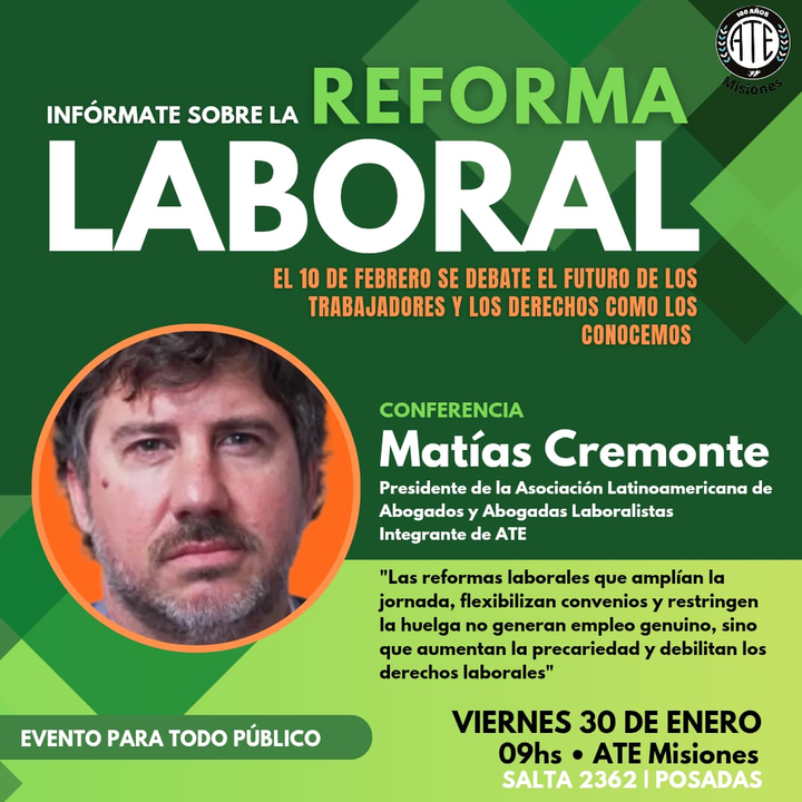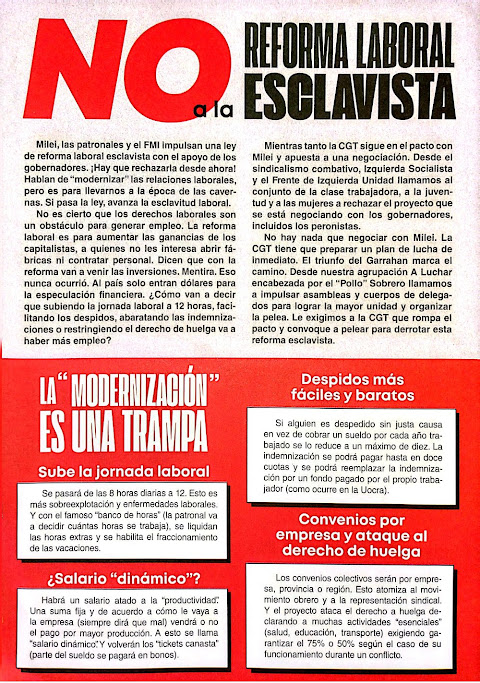En la segunda quincena de enero sucedieron dos jornadas sindicales dedicadas a la reforma laboral esclavista de La Libertad Avanza y sus cómplices provinciales. Esta entrada se ocupa de esos eventos.